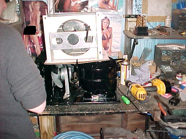 Caution #2: All of the original refrigeration units were very heavy, and this weight kept the machines from tipping over, on top of you, when the main cabinet door was opened..... A Vendo 39 without the proper weight of an original compressor, is dangerous, and will tip forward, and could do serious injury.