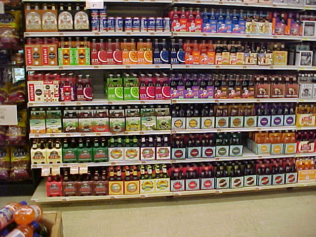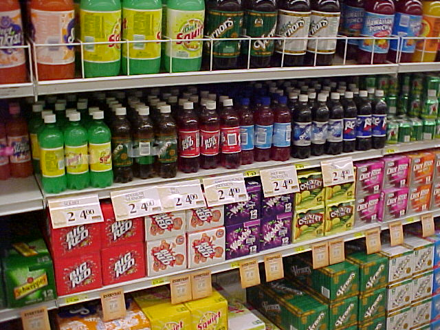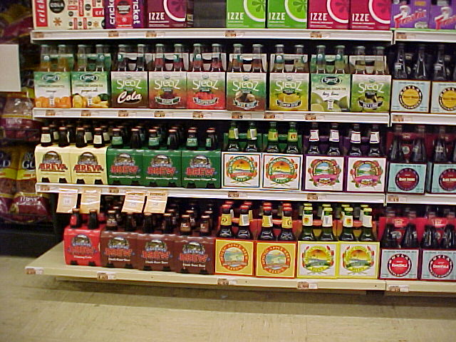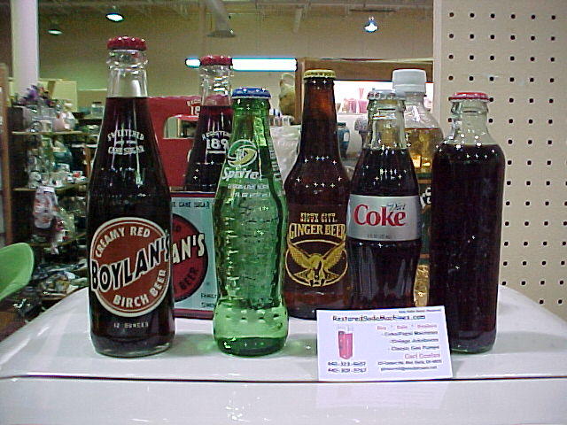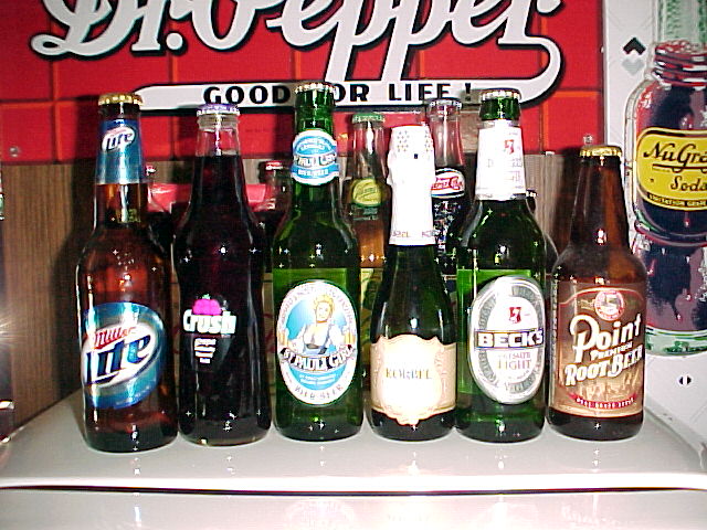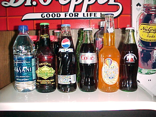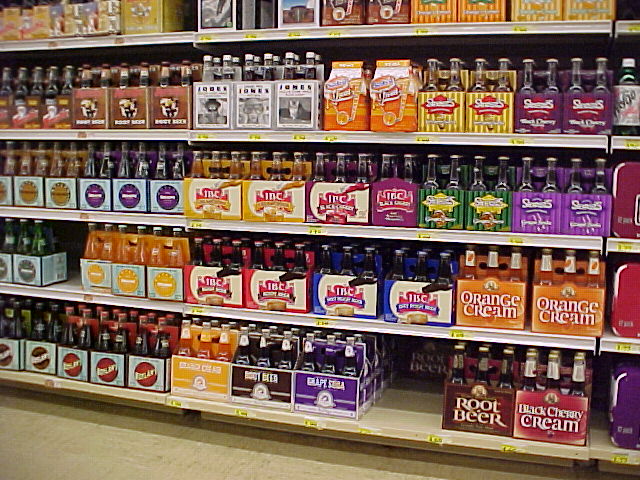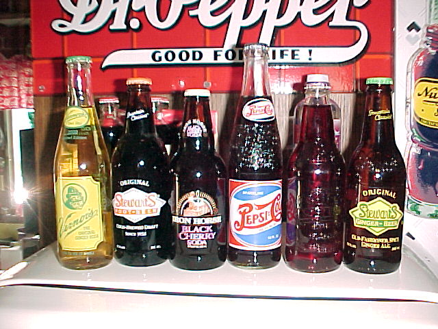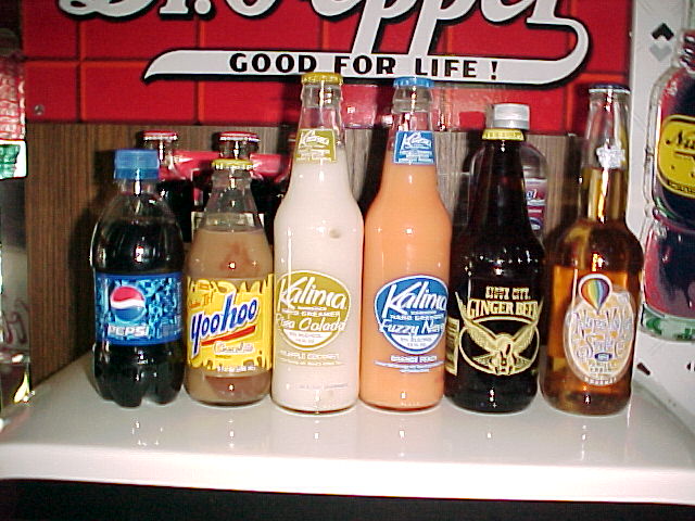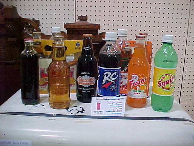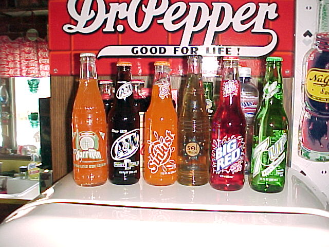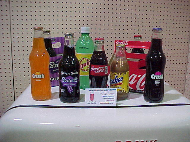 SODAS ON GLASS BOTTLES: ORANGE CRUSH, GRAPE CRUSH, STRAWBERRY CRUSH, IBC ROOTBEER, IBC DIET ROOTBEER, IBC CREAM SODA, 7UP, A&W ROOTBEER, SUNKIST ORANGE, COKE, SPRITE, BIG RED ALSO WIERD OFF BRAND SODAS, YOOHOO . ETC.