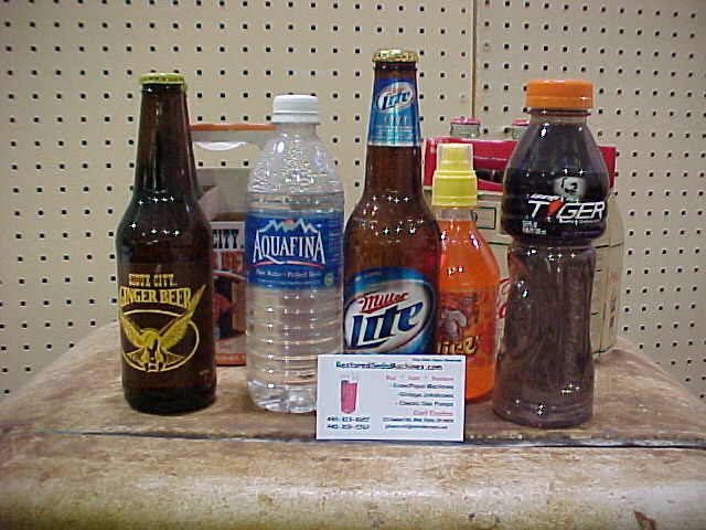A LOT OF THE FUN ASSOCIATED WITH OWNING A VINTAGE SODA MACHINE IS BUYING, COTTECTING, AND ENJOYING THE DIFFERENT BEVERAGES AVAILABLE TODAY THAT WILL VEND THROUGH THESE MACHINES... I HAVE ATTACHED MANY PHOTOS SHOWING JUST SOME OF THE DIFFERENT BEVERATES THAT WILL VEND THROUGH THESE MACHINES...